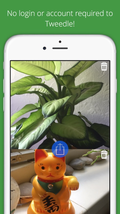TweedleCam - You and what you see in one picture. No Facebook or Twitter login required. Use your front and back camera in one photo! TweedleCam is a new way for you to put the fun back in making photos most notably selfies, with a twist. Guaranteed that you and your friends are going to love this. You can use a flash for both the back and front cam. Use the comprehensive built-in photo editor to enhance the photos, add effects, change colors / brightness, add stickers, add vignettes and overlays. Other tools include focus, crop, orientation, sharpness, draw, meme, text, redeye, whiten, blemish and blur. Just tap one of the photos to open the editor. You can edit each photo individually. Use the Vertical option of the Orientation tool to create stunning mirror photos No need to sign-up or login with any account. Just make your Tweedle and share it for free where and with whom you want. If you like the app, feel free to write a review in the AppStore. As we cannot reply to reviews, please contact us at info@yellowdice.com for any questions about the app.