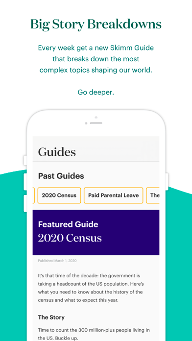 theSkimm App is a membership to living smarter. It integrates into your routine so you’re always in the know, from AM to PM, Monday to Friday. Plus it helps you maximize your downtime on weekends too. Try the app for free. After that, pay less than a cup of coffee a month. We’re making it easier for you to live a smarter life, and there’s a lot that comes with that... DAILY AM NEWS Wake up every weekday with the news you need to know to start your day. All nonpartisan. All in one place. All in 5 mins or less. CALENDAR OF IMPORTANT EVENTS Our calendar syncs directly with yours to make sure you always know what’s coming up and can plan ahead for your routine. It’s constantly updated to make sure you never miss important events in politics, sports, entertainment, and more. Plus, you can choose which categories to follow to make it your own. READS & RECS Every weekday, you’ll get a list of curated picks. Including what we’re watching, listening to, cooking, reading, and more. Consider your downtime managed. BIG STORY BREAKDOWNS The app offers Skimm Guides that go deep on the stories shaping our world. Go down a rabbit hole on everything from the evolution of America’s political parties to immigration in the US. ON THE GO AUDIO Get audio episodes that break down complex stories and connect the dots on why they matter. ------- In-app purchase subscription required. All monthly subscriptions begin with a free trial, after which a recurring charge of $2.99 per month. All yearly subscriptions are charged $29.99 at the time of purchase, with a recurring charge billed annually. Details: - Subscription options: monthly subscription of $2.99 per month, or yearly subscription of $29.99 per year - Payment will be charged to iTunes Account at confirmation of purchase - Subscription automatically renews unless auto-renew is turned off at least 24-hours before the end of the current period - Account will be charged for renewal within 24-hours prior to the end of the current period - Subscriptions may be managed by the user and auto-renewal may be turned off by going to the user's Account Settings after purchase - No cancellation of the current subscription is allowed during active subscription period - theSkimm's Privacy Policy and Terms of Use can be visited at http://theskimm.com/privacy - Any unused portion of a free trial period, if offered, will be forfeited when the user purchases a subscription to that publication