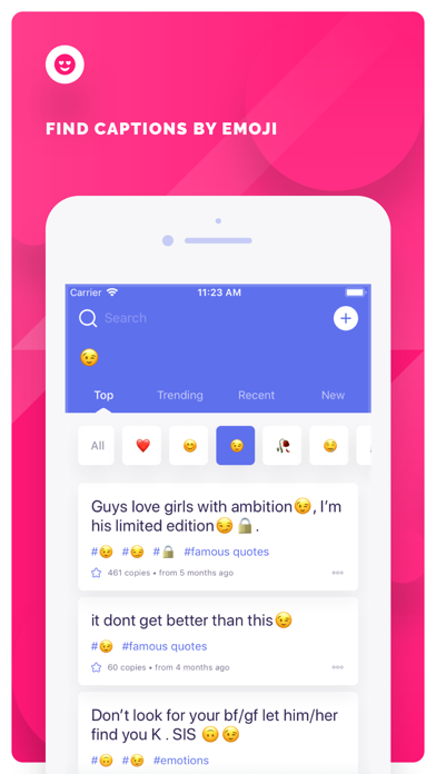 Can't think of a caption for your photo? We got you. We've got thousands of captions for you to choose from. Funny, witty, punny, nerdy, romantic, sad, happy, thankful–we got it all. See Trending captions. Submit your own. @captexp - Payment will be charged to your iTunes account at confirmation of purchase on a once a month basis. Subscription automatically renews unless auto-renew is turned off at least 24-hours before the end of the current period. Your account will be charged for renewal within 24-hours prior to the end of the current period. Subscriptions may be managed by you and auto-renewal may be turned off by going to your Account Settings after purchase. Any unused portion of a free trial period will be forfeited when you purchase a subscription, where applicable. PRIVACY POLICY https://commandforig.com/privacy-policy/ TERMS OF USE https://commandforig.com/terms-of-service/