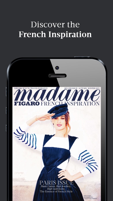 MADAME FIGARO FRENCH INSPIRATION - The Luxury French Touch at your fingertips ! MADAME FIGARO FRENCH INSPIRATION is the must have luxury shopping guide for the world’s most affluent and stylish women who are first to buy excellence and unique know-how. Madame Figaro is the French biggest-selling fashion, art and lifestyle magazine and largest online network. The luxury authoritative brand offering unparalleled access to the world’s best celebrities fashion designers, artists, photographers… ■ Discover exclusive content, Iconic people, selective shopping ■ Experience Slow Chic ■ Adopt a Free Spirit ■ Be inspired by the French Touch ■ Madame Figaro French Inspiration the chic way to travel in France