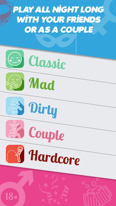 ONLY try out our dirty TRUTH OR DARE app... …if you like: ▸ getting wild with friends or having smoking hot nights in with bae ▸ playing one of the most loco party apps on the market ▸ getting dirty with seriously naughty truth or dare games ▸ finding out some deep, dark secrets ▸ just playing a batshit crazy adult game You’ll love our app because... ...after many updates and countless tests, we know what you need. Thanks in particular to the like and dislike buttons integrated into the application, we constantly inject new dares and truths with each update, always tailored to you weirdos’ tastes! You won’t be disappointed because... ...downloading is free and includes the first game mode that can be fired up and played immediately. Simple as that. 0 ads, 100% guaranteed. You can play hours of truth or dare freely and with no commitment. Annnnnd... ...anyone can play! Thousands of truth and dare or sex games for couples, each more wild and dirty than the last, await. ▸ With friends (choose them wisely!) ▸ You’ve been to enough parties to know that it can be tough to get the vibe going and the laughs flowing. Playing our naughty truth or dare with your friends - guys AND girls - will smash all those taboos. Get people acting stupid together in no time. This party app was created BY adults FOR adults! ▸ As a couple, straight or gay ▸ Our naughty games have also been designed to be ideal for couples. A quick round of sexy Truth or Dare with your significant other is guaranteed to lead to wild behaviour. Our steamy dares and teasing questions will get things caliente in the bedroom. An example? “If she is getting too hot, slide an ice cube between her...” Yep, an erotic adult Truth or Dare is also a great way to rekindle the sexual flame and rediscover your boyfriend or girlfriend’s darker side. Ready for a hot evening? It's up to you two to decide how far to take it... ▸ With the ladies for a steamy sleepover ▸ Combining your girls' night in with dirty Truth or Dare is a tried and tested recipe for success. Discover your girlfriends' outrageous secrets! And it doesn't matter if your girl refuses to fess up, our app will provide sexy and outrageous dares for her so the scandal never stops! Who said sleepovers were only about tame games for timid teens? ▸ With the boys - your tightest squad ▸ Boys keep secrets too, and men even more so! Time to uncover some deep dirt. If you already think you know everything about your buddies, our extreme Truth or Dare will prove you massively wrong. So, who wants to find out who their crew really are? ___________________________________ - Be careful, what happens in Truth or Dare, stays in Truth or Dare... - No one should ever feel forced to perform a dare or reveal a truth that he or she does not feel comfortable with. - In-app purchases available. ___________________________________ Premium pack & features subscription: Our Truth or Dare offers two auto-renewing subscription options: $3.99 per week or $11.99 per month. Once you've confirmed your order, the payment will be charged to your account, with the right price for your country. The subscription will automatically renew at its end date. You can stop the automatic renewal any time. To avoid the renewal, cancel it at least 24h before the end date of your subscription. No refund is available for unused time. Terms & conditions: https://www.applicationiphone.info/truth-or-dare-dirty-games-terms-conditions/ Privacy policy: https://www.applicationiphone.info/truth-or-dare-dirty-games-privacy-policy/