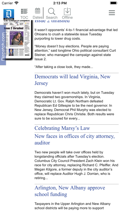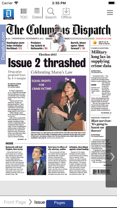 The Columbus Dispatch Electronic Edition brings you the page-by-page design and flow of each day’s paper straight to your iPad. As a subscriber you can download an exact replica of The Dispatch — including every page, story, photo and ad — whenever you want so you can take it wherever you want. The Dispatch iPad Edition is perfect for travelers, former central Ohioans, readers who don’t live in the Dispatch delivery area, folks who want to stay up to date on their favorite Columbus teams — or anyone who wants to take the paper with them every morning. Here's just some of what’s great about the E-Edition of the publication named the state's Best Newspaper by the Ohio Associated Press Media Editors the last four years in a row: • It’s been updated to more closely replicate the popular online Electronic Edition. Now, you can chose from a wider number of display options, get a quick “at a glance” digest of the day’s contents and more. This is no mere flipping of pages. • A left-hand sidebar takes you beyond each day’s edition with a live feed of Dispatch stories and updates as they’re posted • You can search within a day’s paper or in back issues of dates you choose. Search articles, ads, pictures — search it all! • It's quick to download and you can begin reading the front page while the rest of the newspaper downloads in the background • The toolbar allows you to easily jump around from section to section, bookmark stories, search the entire paper and more • You can read stories on the page (as you would the print edition), tap once to enlarge and tap twice for a special “story view” • Tapping a story’s “jump line” takes you directly to its continuation • You can easily share stories via email and popular social networks • Websites and email addresses mentioned in stories and ads are hot-linked • You can hang on to each paper for as long as you'd like — or delete it right after you're done