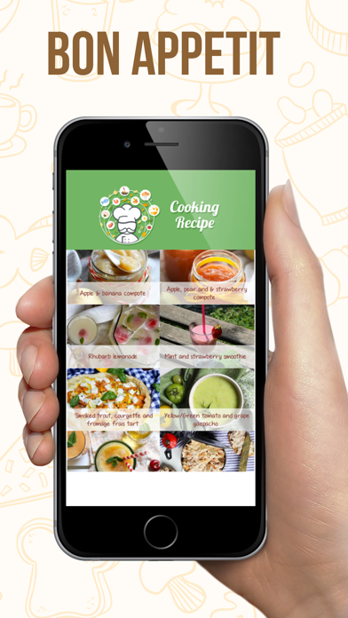 ********************* Learn how to cook some healthy recipes for free! The best recipes from "Delice Celeste" to keep your shape and weight. ********************* So many recipes for free, easy and fast to do! Follow our steps and eat some great food! Your friends and family will need more! ********************* Discover recipe from "Delice Celeste" blog, learn how to cook some healthy recipes cooking with this great app : -Apple & banana compote. -Apple, pear and & strawberry compote. -Rhubarb lemonade. -Mint and strawberry smoothie. -Smoked trout, courgette and fromage frais tart. -Yellow/Green tomato and grape gazpacho. -Cool drink: pear and peach cider. -Tuna and smoked trout rillettes. -Vegetarian carrot rillettes. -Courgette, feta and pepper bites. -Chickpea and pumpkin seed bread. -Butternut squash and Morbier soup. -Cheese centred chicken sausages. -Romanesco mash. -Spring rolls. -Nori scrambled eggs. -and way more recipes on Delice Celeste