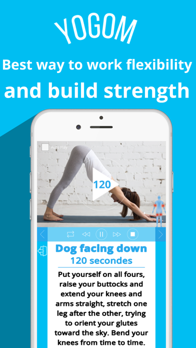 •••More than 2 hours of yoga with music, stopwatch function, pictures and descriptions of 77 postures organized in 2 programs.••• •HOW DOES THE APP WORK ? Thanks to its simple design navigation is very easy: you just need to launch the program of your choice and you will see a series of positions, illustrated with a picture and a description. We have even developed a stopwatch function to guide you and show you how long you should hold the positions. You can even break if you want to stay longer on a position, go back or move forward if a position seems too difficult, for example. Note also the small boutton Auto-Play on the top left of the screen: check it if you want the positions keep coming. We tell you which muscles each posture solicits. Please read the description of each position before doing it. Hold the position as long as you feel comfortable, if it takes too much on certain muscles stop. It is better to stay longer in a position without forcing. This is the principle of yoga : softly but deeply. •BEGINNERS PROGRAM : A beginner program combines restorative soft yoga postures and yin yoga for a period of 60 minutes. This program has been designed by our expert yogis. It will bring you deep relaxation, power and a great well-being feeling. Perfect to practice in the evening, before to go to bed or when you are stressed. It can be good to practice this program even for expert yogis because it restores the bodies in depth and provides a complementary practice to more powerfull or cardio yoga. •PRO PROGRAM : An intermediate level program designed for those of you who already practice yoga for some time ; Bodybuilding in depth, advanced postures. You want to progress ? This is the program for you. If you are unable to perform the positions, try the following or find a similar variation of the position to feel more comfortable . •••MUSIC••• The famous Manu Om is an expert yogi and composer of songs for yoga. We hope you enjoy his music specially created for the practice of yoga, meditation and devotional love to experience.