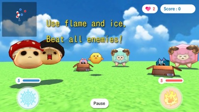Enjoy new style shooting game. Use flame and ice, beat enemies! Extremely adorable monsters come to you! - Chick - Mushroom - Cat Box - Sheep - Boar - Snake - Flower - Tree - Cactus - Dragon - Teruteru