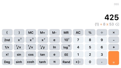 Effortlessly solve any math problem. Calculator Air - the standard and scientific calculator you need. FEATURES: • Equation Preview: Your current equation is displayed below the result • Mathematical operations: Addition, Subtraction, Division, Multiplication, Percentages, Nth Exponent, Nth Root, Power of E, Power of Ten, Power of Two, Square, Square Root, Natural Logarithm, Common Logarithm, Sinus, Cosinus, Tangus • Dark Mode: Protect your eyes from bright light and save your battery life • History: Save all calculations in your history • Two Modes: Portrait and Landscape Mode PRO FEATURES: • All Air Apps • Unlimited use • 100% Ad-free • All features Choose from different subscription options. Our standard subscription options are: 1-month Subscription - USD9.99 1-year Subscription - USD69.99 Subscription payment will be charged to iTunes Account at confirmation of purchase. Subscription automatically renews unless auto-renew is turned off at least 24-hours before the end of the current period. Account will be charged for renewal within 24-hours prior to the end of the current period. Subscriptions may be managed by you and auto-renewal may be turned off by going to iTunes Account Settings. For more information please visit the link https://support.apple.com/en-us/HT202039. No cancellation of the current subscription is allowed during the active subscription period. Any unused portion of a free trial period will be forfeited when a user decides to subscribe. Facebook: https://www.facebook.com/airappsco Twitter: https://twitter.com/airappsco Instagram: https://www.instagram.com/airappsco Privacy Policy: https://airapps.co/privacy Terms Of Use: https://airapps.co/terms Support: support@airapps.co