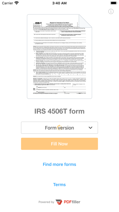 Complete your 4506-T form efficiently on any iOS device With the new 4506-T Form application, you can request a Transcript of Tax return for free with your iPhone or iPad. Manage your tax forms easily without additional tools or time-consuming registration. Install the 4506-T form application and start completing the required version right on your iOS device. Every day about 80,000 customers securely complete various documents with the help of PDFfiller. The comprehensive PDFfiller’s editing tools allow you to provide all necessary data in the most suitable format. Save time and go digital for free. Key features: - type text anywhere on the form and edit it whenever you need to - navigate between fillable fields using the arrows on the top of the screen - date the form automatically - add custom graphics including checkmarks, images, lines, arrows, etc. - draw a digital legally binding signature using your fingertip or stylus - email the completed form or print it right from your iOS device