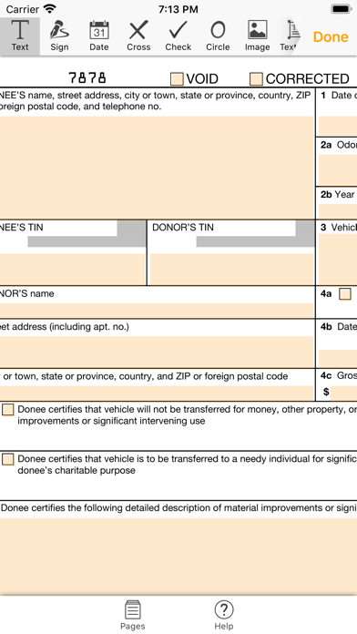 Complete, send and print the 1098-C form quickly and easily on iOS device. With the new 1098-C Form application you can complete the return for Contributions of Motor Vehicles, Boats and Airplanes and submit it from your iPhone or iPad. Once you receive this form from the charitable organization you’ve donated to, PDFfiller’s convenient editor will do the hard part for you, making this document easy to fill out. Filling out 1098-C Form will take no time at all. The advanced PDFfiller editing tools help you enter all the required details in the most suitable format. Do your paperwork efficiently and for free. Key features: - type text anywhere on the form and edit it whenever you need to - navigate between fillable fields using the arrows on the top of the screen - date the form automatically - add custom graphics including checkmarks, images, lines, arrows, etc. - draw a digital legally binding signature using your fingertip or stylus - email the completed form or print it right from your iOS device