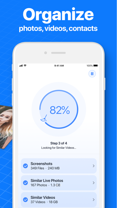 Easily remove duplicate contacts, screenshots, similar pictures and Live Photos on your iPhone. Clean up your device in just one tap with the Smart Cleaning function. Here's what you can do with our app: – Remove all unwanted files at once – Search and remove screenshots – Search and remove similar pictures – Search and remove similar Live Photos – Search and remove similar burst photos – Search and remove similar videos – Organize photos by places – Remove all photos taken in one location – Browse photos in a convenient list – Hide your photos, videos and contacts in the discreet Secret Space – Search and remove duplicate contacts – Merge contacts – Backup contacts – Fast delete contacts You can also start Smart Cleaning via Siri or Shortcuts and remove unwanted files even faster! NOTE: This app cannot clean your device memory. You can choose free trial with all features available. UNLIMITED ACCESS MEMBERSHIP SUBSCRIPTION • You can subscribe for unlimited access to all features within Smart Cleaner. • Subscriptions are billed weekly, annually or one-off upfront payment at the rate selected depending on the subscription plan. By using Smart Cleaner, you agree to our Privacy Policy and Terms of Use: http://bpmob.com/smartcleaner/privacy/ http://bpmob.com/smartcleaner/terms/
