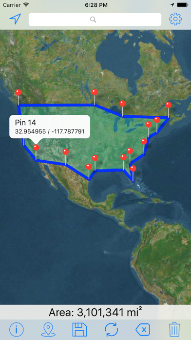 Area Calculator Pro is a great app to calculate areas between points on the map. You can create any number of pins on the map. The app calculates the area between them automatically. More Functions: - You can locate yourself and create a pin at your current location with only one click. - You can move pins on the map. The area adapts automatically. - You can search places. - You can save and load your area. - Choose your preferred map type (standard, satellite, hybrid). - Choose your preferred area unit (meter² and kilometer² or feet² and mile²). - Various settings