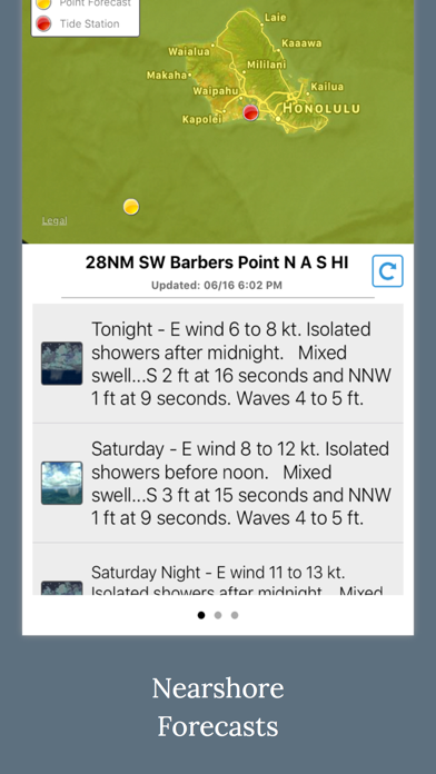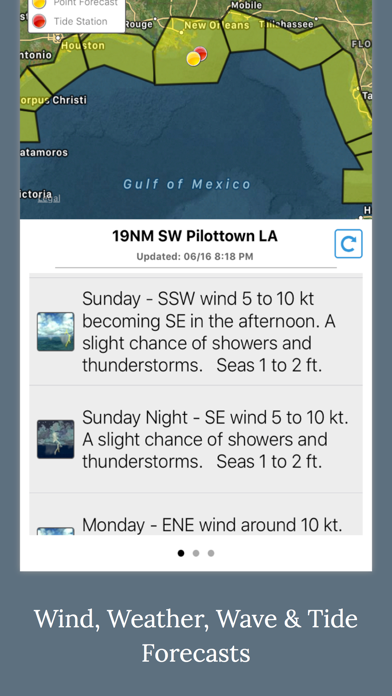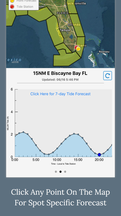 ** The fastest way to access NOAA Boating WX Data ** 5-day National Weather Service marine forecast - Text summary, spot specific forecast - Weather, sky, wind, waves 7-day tide forecast - Hourly tides - Interactive graphs Simply tap anywhere on the map and view NOAA's spot specific point marine weather and tide forecast. ** Available for iPhone and iPad ** Forecast coverage includes: - East & West Coast - Great Lakes - Gulf of Mexico - Florida - Hawaii - Alaska - Puerto Rico It's so simple and fast to use, that there is no need for saving favorites. However, the app will automatically save your most recently viewed forecast for future viewing. Feel free to contact me at mwnbdc@gmail.com if you have any questions. Enjoy.
