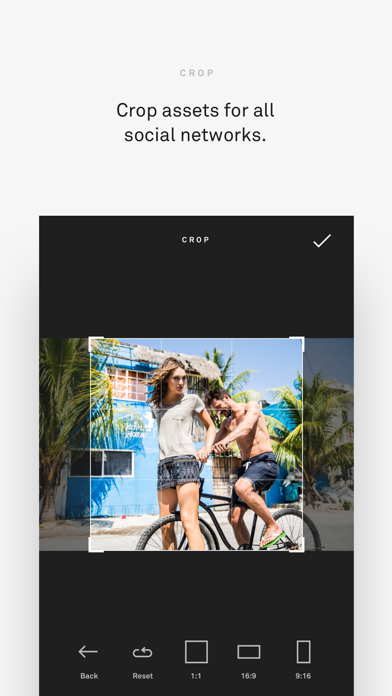 With LOOP.Cargo, we’ve created a tool that effectively simplifies workflow for your social media content production. Simply upload any assets to LOOP.Cargo following a shoot and the app gives you access to all of your potential social media content. View, select, and favorite your photos and then your can crop and prepare them for all social media platforms in any needed format directly via the app.