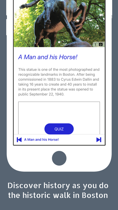 SCAVENGER HUNTS A wonderful way for families to discover tourist destinations in a fun and unique way. Providing a stimulating, interactive outlet for children (of any age) traveling to tourist destinations. Each location has ten pictures (stops) with corresponding questions. Locate the item pictured and find the answer to the question. If you need help A GPS locator is available. Perfect for family outings, adult competition and team building. We have scavenger hunts for the following cities: -Boston, Massachusetts (Freedom Trail) -Cambridge, Massachusetts -Plymouth, Massachusetts (Pilgrim Hall) -Salem, Massachusetts -Concord/Lexington, Massachusetts -Quincy, Massachusetts -Nantucket, Massachusetts -Philadelphia, Pennsylvania -Gettysburg, Pennsylvania -Washington, D.C. -Getty Museum, California -Springfield/Home of Abraham Lincoln -New York City, Manhattan -Montreal, QC, Canada -Aiken, South Carolina -Los Angeles, California (Getty Museum) and many more . . . Please note: Continued use of GPS running in the background can dramatically decrease battery life.