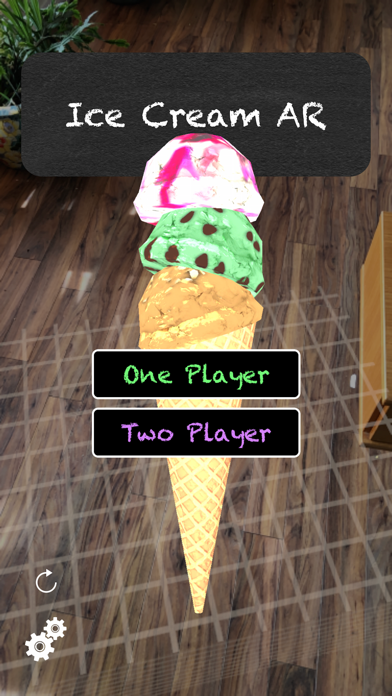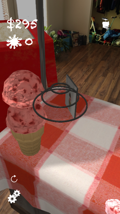 Ice Cream AR is something new. It brings the promise of AR to life with a fun single or multiplayer game that makes anywhere an Ice Cream Shop. You start the game with a mobile ice cream cart and an unlimited supply of vanilla ice cream. By selling your cones to virtual customers you can earn ice cream bucks to upgrade your carts, unlock flavours and cones, and achieve the ultimate ultimate ice cream shop. Everything about this game is intended to be self-explanatory and fun. You start by scanning your environment so that the intelligent game engine can place tables on top of your existing furniture. Once you place your ice cream cart you can open you store and start fulfilling orders. Order appear at the tables in your space. Each one has a picture of the order and a cost. Match the cone and flavours in any order over at your cart. Once correct the order will glow green to show it's ready. Tap it to fulfill the order and you'll get a fun animation.Do your best to stack the cone as requested so you can get paid . If you make a mistake the order drops and makes a mess all over your furniture. Taking advantage of Apple's groundbreaking Augmented Reality technology, we have sophisticated algorithms behind the scenes calculating your location in your space, the location of objects, and a powerful physics engine all to make the ice cream scoops fall in a realistic way, hide behind objects, and make splats that seems realistic in your world. Designed from scratch for iOS by a company driven by a female co-founder, this unique game redefines what kind of casual games are possible in Augmented Reality. Download this app now and start experiencing games with friends in a whole new way.
