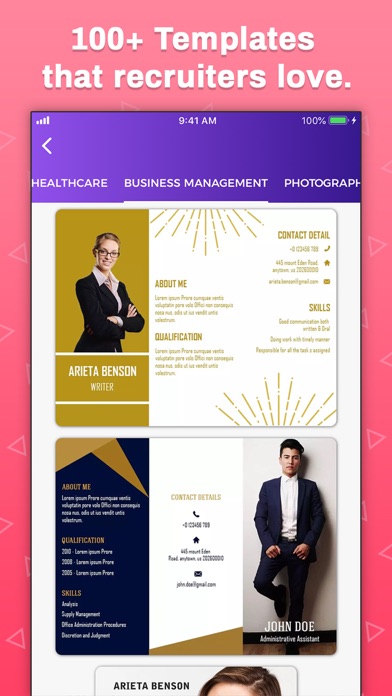 You're creative, but you need to find a way to show it on your resume. Don't worry. This Resume maker app has over 50 creative resume template ideas with samples and it is editable. This app is a complete guide follows on how to make a professional, artistic resume that will stand out to get you that interview. A creative professional resume is an exception, not the rule. The times you should use a creative resume are fewer than when you should use a formal resume. Still, it's a good idea to make your resume reflect your ideal work environment. If your dream job is creative, then you may want a creative resume. Are you looking for the latest Resume Formats? Key Features: 1. Various collection of the professional and beautiful resume template 2. High-level customization support 3. Cool sticker collection with adding your own option 4. Add text with multiple fonts and text effects 5. Change background from gallery or from background collection 6. Undo or Redo your changes 7. Autosave your work 8. Multiple layers 9. Share on social media 10. Easy to use “Resume Maker Pro” Subscriptions: 1. Monthly subscription: $4.99 2. Six months subscription: $19.99 3. Yearly subscription: $29.99 These prices are for United States customers. Pricing in other countries may vary and actual charges may be converted to your local currency depending on the country of residence. If you choose to subscribe, the payment will be charged to your iTunes Account at confirmation of purchase. Your trial subscription will automatically be converted to a paid subscription at least 24 hours before the end of the trial period. Any unused portion of the free trial period, if offered, will be forfeited when you purchase a subscription to that publication. From that moment and further, subscription automatically renews until auto-renew is turned off at least 24-hours before the end of the current period. Subscriptions may be managed and auto-renewal may be turned off in Account Settings after purchase. No cancellation of the current subscription is allowed during the active subscription period. If you have any questions while using this app, please contact us via email at info@optimumbrew.com. Terms of Use - https://sites.google.com/view/bgiosapp/terms-conditions Privacy Policy - https://sites.google.com/view/bgiosapp/home Please rate the app and give your feedback to help us improve and create much more unique apps for you.