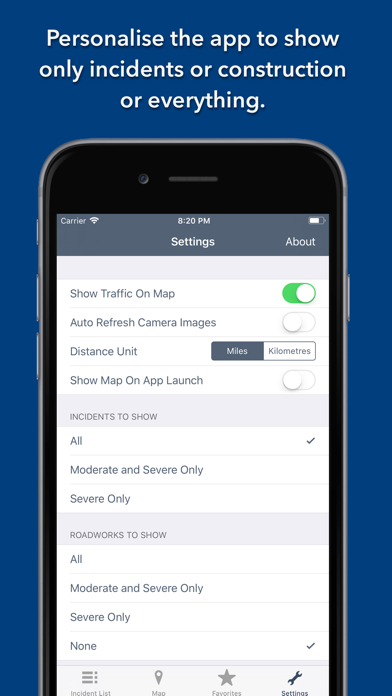 Live traffic reports and cameras for Virginia State. Save your favorite cameras for quick access. The May 2018 release optimises for iOS11 and the iPhone X. KEY FEATURES: Live data from The Virginia Department of Transportation (VDOT): - 1,200+ traffic cameras covering Virginia State. - Today screen widget to show at a glance the nearest current traffic incidents - Optimised for all iPhone and iPad models; fully tested on iOS9, iOS10 and iOS11. MAP VIEW - Shows current incidents and traffic cams - Each incident is color coded as well as being represented by an icon showing the incident type. - Clicking on an incident displays more detail right there on the map. - The map view can also show live traffic camera videos. LIST VIEW - Shows current incidents in order of distance from your current location (closest incidents are shown first). - Each incident is color-coded to indicate the severity of the delay. - You can quickly see the distance the incident is from you, the road name and the type of incident. - The detail view shows the description together with a map showing the location. - Full search functionality, works across both the list and map views. TRAFFIC CAM FAVORITES - Save your favorite cameras for quick access to see how clear/congested your usual routes are. TODAY WIDGET - Shows at a glance the nearest current traffic incidents without launching the app. PERSONALISE - Toggle traffic information on the map. - Toggle always show map on app launch. - Toggle construction on/off. - You can configure which incidents are displayed according to the severity of the delay caused. - Miles or KM setting. CONTACT - Email me for feature requests/bug reports etc. I would love to hear from you! Data courtesy of The Virginia Department of Transportation (VDOT).