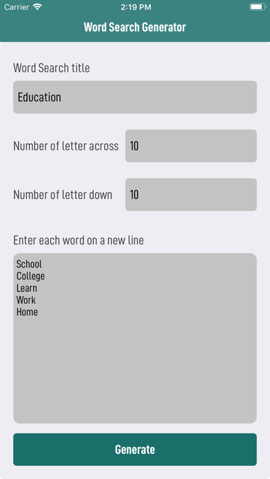 Are you trying to engage an audience and make a lesson or lecture fun? The Word Search Generator is a powerful educational tool which can bring that spark back to your lesson and worm up the students for the complex content that you are trying to deliver, or simply just break the ice when starting a teaching, training or mentoring session. The app is compatible with all iPhones, iPad, and Macbook type, perfect for educational purposes. The WordSearch Generator has an easy to use interface, highly intuitive. The app allows you to create beautifully designed and custom made Word Search Puzzles which can be saved on your device and can be edited on a different date to be adapted for a new audience. -simple to use interface -highly customizable -puzzles are editable once created -safely store puzzles on your device -perfect for engagement at all levels -applicable to any topic or subject -available for download as PDF and email This Word Search Generator allows you to generate unlimited puzzles, save them on your device, and share them via email with anyone you like at no additional cost. Enjoy!