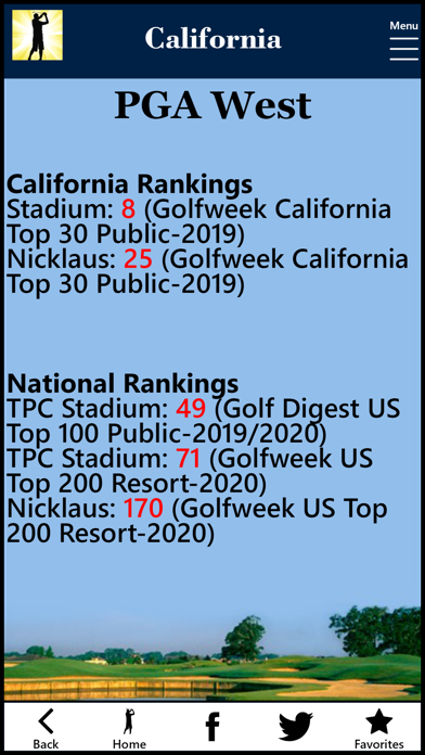 Don’t waste your time on a dog track. GolfDay California includes more than 950 courses, and rates each one to make it easy to find the best course near you or where you plan to be. Once you decide, direct on-line booking provides the best price with no fees. • Never any pop up ads • GolfDay Rating for value • GolfDay provides information on more than 10,000 courses nationally • Direct on-line booking for best price and no fees • GPS Proximity Course Search (from where you are or plan to be) • Local and National Rankings by Golf Digest and Golfweek • Current USGA Course Rating/Slope • Practice facility detail (public courses and resorts) • Mapping and directions • Local Golf Course Weather • Link to Course Web Site • Golf Trails with courses, maps and detail
