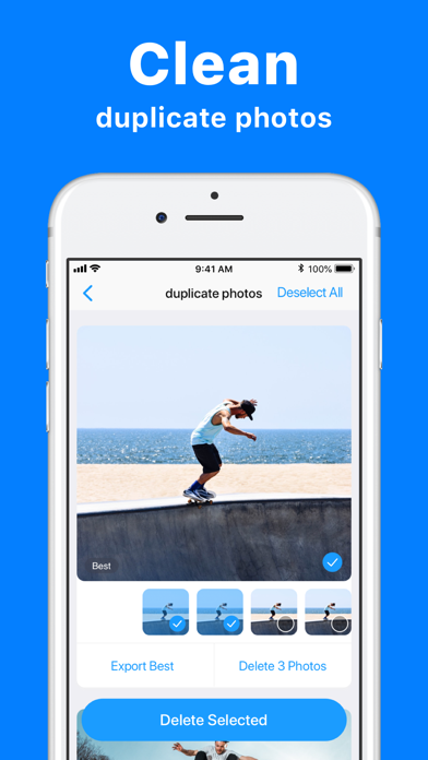 Best duplicate photo cleaner to delete duplicate & similar photos & free up space. Fast & Easy! 100% accurate results. Include file preview & undo option. Try Now! Quickly clean up your iphone in 1-Click! What’s more, our app supports Battery & Storage Widgets! Cleaner Key features: ◆ SUPER CLEANER ◆ -Clean duplicate photos & videos -Clean similar photos -Quickly remove useless videos by different types -Merge duplicate contacts by name, number, email -Delete incomplete contacts -Backup contacts -Battery widgets to check the battery state easily -Storage widgets to check the storage easily -Photo widgets to stylish your homescreen ◆ SUBSCRIPTION TERMS ◆ Tittle:One Year- Super Cleaner Premium Length of Subscription: 1 YEAR Price: Free for 3 days, then $39.99/ Year after free trial Title: One Week - Super Cleaner Premium Length of Subscription: 1 WEEK Price: Free for 3 days, then $3.99/ Week after free trial Tittle:One Year- 3 Day Free Promotion Super Cleaner Length of Subscription: 1 YEAR Price: Free for 3 days, then $19.99/ Year after free trial • Payment will be charged to iTunes Account at confirmation of purchase • Subscription automatically renews unless auto-renew is turned off at least 24-hours before the end of the current period • Account will be charged for renewal within 24-hours prior to the end of the current period, and identify the cost of the renewal • Subscriptions may be managed by the user and auto-renewal may be turned off by going to the user's Account Settings after purchase • Any unused portion of a free trial period, if offered, will be forfeited when the user purchases a subscription to that publication, where applicable • You can cancel a free trial or subscription anytime by turning off auto-renewal through your iTunes account settings. This must be done 24 hours before the end of a free trial or subscription period to avoid being charged. The cancellation will take effect the day after the last day of the current subscription period, and you will be downgraded to the free service If you have any issue, feedback, suggestion, or just want to say hi, please feel free to let us hear from you at " mobileusercontact@gmail.com " so we can continue to bring you the best experiences and updates. Privacy Policy: https://docs.google.com/document/d/1E8EllV5fECOQ6TVwkj4fSncJZY9xH8B7GcxxvI3PgWs/edit 6. Term of Use: https://docs.google.com/document/d/1TFHHXHXBFrgUud7wOUqJUC156J3UWhTEA2dzQI3-QTY/edit