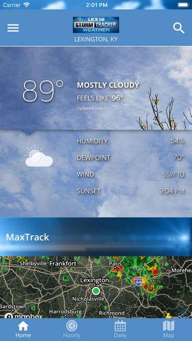 The LEX18 Weather App includes: • Access to station content specifically for our mobile users • 250 meter radar, the highest resolution available • High resolution satellite cloud imagery • Future radar to see where severe weather is headed • Current weather updated multiple times per hour • Ability to add and save your favorite locations • Daily and Hourly forecasts updated hourly from our computer models • A fully integrated GPS for current location awareness • Opt-in push alerts to keep you safe in severe weather • Severe weather alerts from the National Weather Service