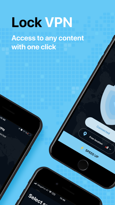 LockVPN - free anonymous VPN service to protect your iOS device, safely and securely surf the websites and more. Best free VPN app for iPhone to protect your privacy online. Benefits: - Free VPN is a 100% unlimited - A wide range of countries - Connection with one click - No registration - Full anonymity - Connects to Wi-Fi safely - Free 3-days trial Premium Stay secure and anonymous anytime you go online. Lock VPN hides your IP address and encrypts your network data. One click, and you’re protected.