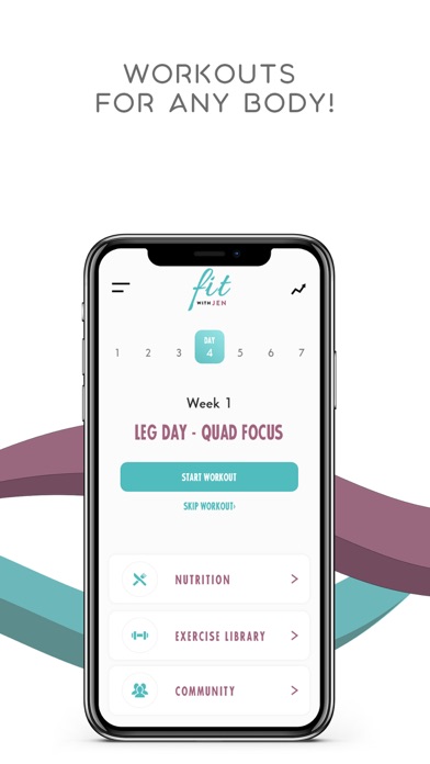 Take your fitness journey to the next level with the Fit with Jen app. With balanced meal plans and a variety of workout plans to choose from, the Fit with Jen app will help guide you and boost your confidence. GUIDED PROGRAMS AT YOUR FINGERTIPS - Home and gym workout programs - Video demonstration with tips for every exercise - Step-by-step videos and voiceovers to guide you NUTRITIONAL MEAL PLANS Hundreds of healthy recipes will help you take the guesswork out of your daily meal planning. Fit with Jen meals plans will help guide you to achieve results and ensure that you are fueling your body for your day and your workouts. - Hundreds of delicious balanced meal plans - In-app macro calculator to help you plan your diet based on your goals - Grocery list generator to get a detailed list of what you'll need to buy for the week AND SO MUCH MORE - Monitor your progress using the Fit with Jen in-app progress tracker - Lean on the Fit with Jen community to keep you committed to your goals Fit with Jen has Apple's HealthKit integrated. The app will track steps as well as your walking or running distance SUBSCRIPTION PRICING & TERMS The Fit with Jen App is $19.99 USD/month, $39.99 USD/quarter or $79.99 USD/year. Payment will be charged to your credit card through your iTunes account at confirmation of purchase. Your subscription will renew automatically unless cancelled at least 24 hours prior to the end of the subscription period. Subscriptions can be managed and auto-renewal turned off in Account Settings in iTunes after purchase. Once purchased, refunds will not be provided for any unused portion of the term. Terms of Use: https://www.fitwithjenapp.com/terms-of-use.html Privacy Policy: https://www.fitwithjenapp.com/privacy-policy.html