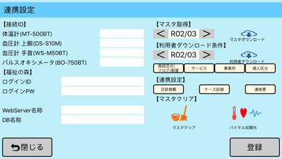 福祉の森FUTUREにバイタル情報を登録するアプリケーションです。 ●対応モデル(日本精密測器株式会社様製品のみ) 上腕式デジタル血圧計:DS-S10 手首式デジタル血圧計:WS-M50BT 皮膚赤外線体温計:MT-500BT パルスフィット:BO-750BT
