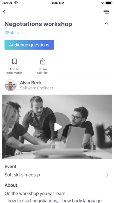 Now you don’t need multiple apps to organize or attend an event! mobi-Z is a single app with multiple capabilities. Launch and promote an event and collect feedback immediately. Use chats and Q&A sessions for networking and push notifications for urgent updates. As an event Attendee, with mobi-Z you will never miss hot events on IT, soft skills, business, and many other useful topics. The app tracks your interests and offers a personalized events list. Register for a long-awaited event in single-click ease. Watch talks, ask questions and chat with other mobi-Z users online! Special features: • Search for events and talks by location, your interests, speaker or title, • Keep track of the agenda. See what talks are coming next, • Learn about speakers. Search for a speaker you are interested in, view the speaker’s profile, see list of their talks, • Chat with mobi-Z users, • Take part in Q&A session, • Get push notifications about important changes to the agenda or event, • Watch talks online, • Download useful materials from a speaker’s talk. As an event Organizer, you have a variety of possibilities to create an outstanding event on the community-z.com platform. Build your own agenda, add venue description, make an appealing landing page and much more. All events on the community-z.com platform are automatically synchronized with the mobi-Z app. Community-Z in numbers: • 450 communities in a wide range of subjects, • 1700 speakers - experts in their fields, • 40 000+ users, • 1600 conducted events. Boost your event experience with mobi-Z! Events from A to Z.