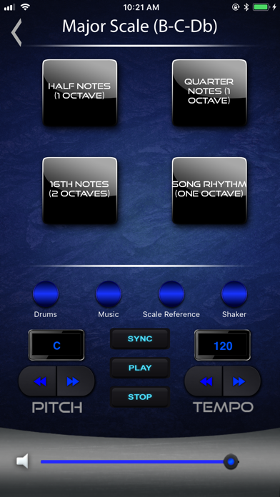 The worlds first mobile app specifically designed to make practicing scales amazingly fun and exciting! Come on, let's be real. Sitting down with your instrument and turning on a metronome (click..click...click...) at 60 bpm to repetitively play the same scale over and over again although effective, is not the most exhilarating experience that you're just longing to get back to every day. We understand that, and that's why we created Scale Junkie! With Scale Junkie, you can have a fun immersive experience while practicing your scales to music specifically created to keep you engaged, and interested the whole entire time! You're not just practicing to a metronome any more, you now have a full band playing along with you! The scales you practice are now a melody to a song, and the Scale Junkie band accompanies you, making it a fun and enjoyable experience! Key Features: -Change the tempo to create the pace at which you desire to practice -Practice Major scales in all 12 keys -Switch seamlessly between musical sections -Separate audio tracks with the ability to mute out instruments and practice to what you want to hear -Great for drummers to practice to as well -Scale Reference for each scale so you can hear what to practice on