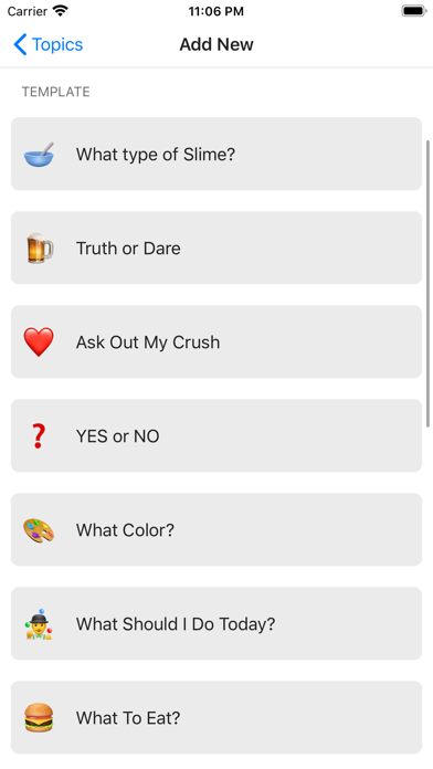 Easy Decisions is an app that makes decisions fun & easy! Just input your question, add/import options, and spin the wheel to get a random answer. Make quick decisions! It’s always so hard to decide. Should I get a pizza or a burger? Should I get it in grey or black? Should I do this or should I do something else? The Tiny Decisions app is created just for you! Features: * Make your own wheel * Touch to decide * Flip a coin * Built-in decision templates * Color themes * Select non-repeating options Please write a review if you like this app, it's very important to me.