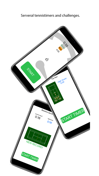 Made for tennisplayers, track your personal records or sprints such as fanruns, baseline sprints. Also you can store your **challenge** records such as can serving, high bounce and double unders. These challenges are already setup for you. Easy storage of your records keep track of your improvements. Never writing down records again. ====================== FEATURES: **predefined tennis sprints, get better and improve your time. **predefined tennis challenges, challenge yourself. **make up to 5 personal timers, change them en keep track of your highscore. ======================= All records are stored for you!!.