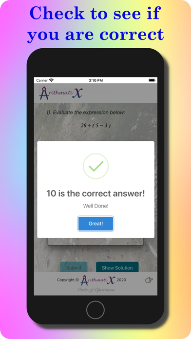 Order Of Operations is commonly known as BIDMAS or BODMAS to students of the UK or PEMDAS to international students. It is an app for mathematics students that wish to practice the order in which the mathematical operations should be executed. What is included in this app is a brief explanation of what BIDMAS (PEMDAS) is and some examples showing, in stepwise fashion, the correct order in applying the various operations. Also included are a set of exercises in the form of multiple choice questions. The student can choose the level of difficulty of the questions by choosing foundation or higher prior to starting the exercises. The questions are comparable to the current GCSE questions taken by students at GCSE in England and iGCSE, a qualification for international students. Some questions have also been adapted to preempt what could be asked in future GCSE and iGCSE examinations. The app notifies the student if his/her answer is correct and also keeps a running total of the score as each question is answered. A solution is given for each question in a stepwise fashion also and a final score is given at the end of the test.
