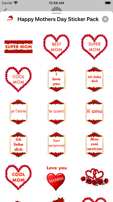 You can send these awesome stickers to your mom on Mother's Day or whenever you want to tell her how much you love her. You can also send these awesome stickers to celebrate your beloved ones' Mother's Day. There are 243 awesome stickers in this sticker pack.
