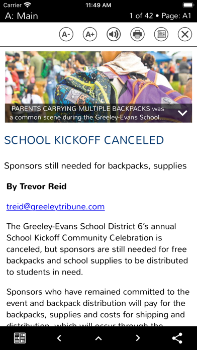 This app is specifically for Greeley Tribune e-Edition readers. It was designed for ease of use for our e-Edition readers. You can view a digital version of the Greeley Tribune every day and even view old editions. The app features graphical and text viewing modes, horizontal and vertical display, and multiple days of archives.