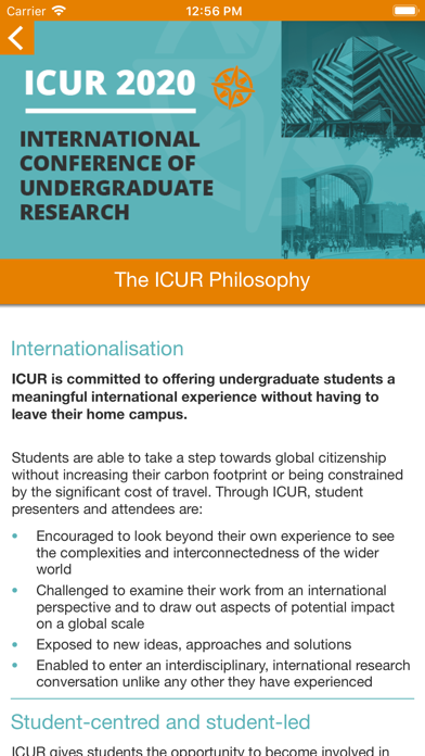 The official event app for the International Conference of Undergraduate Research. Supported by the Monash Warwick Alliance. Created to streamline scheduling and participation for all presenters and audience members both virtually and physically attending the conference from all participating institutions. ICUR 2020 will take place on the 29th & 30th of September, 2020. Features include: - Access the full event schedule, presenter list, book of abstracts - Ability to bookmark sessions and take notes - Join spoken panels, ask, interact and discuss with presenters during presentations - Access and interact in international digital poster sessions - Find more information regarding ICUR 2020, the ICUR philosophy and the conferences history