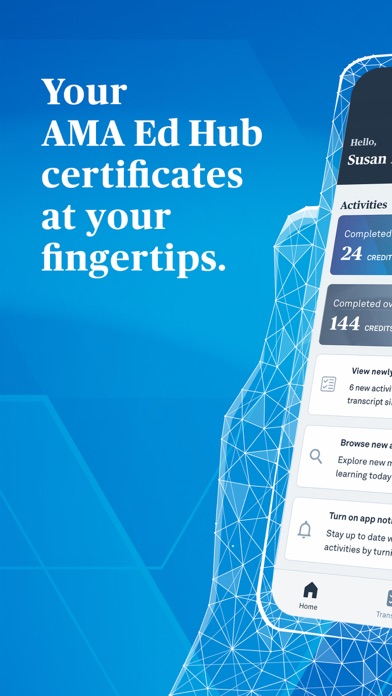 Now with the new, completely free, AMA Ed Hub Transcript app you can quickly access your AMA transcript, certificates and awards from the palm of your hand. No more manual spreadsheets or paper documentation, the AMA Ed Hub Transcript app will do the administrative work for you. This new app helps medical students, physicians and medical professionals easily manage their continuing education credit and transcripts. AMA Ed Hub Transcript will send you alerts whenever you complete educational activities and when CME credits are automatically submitted to participating boards. With its CME and credit tracking dashboard you can finally step away from the old-fashioned and time-consuming paper-based transcript tracking. You can now focus on what you care the most, taking care of your patients. Take your AMA Ed Hub professional transcript with you wherever you go and let this app do the transcript management work for you. Never lose track of your AMA credits again, whether you need to report CME, MOC or CEUs.