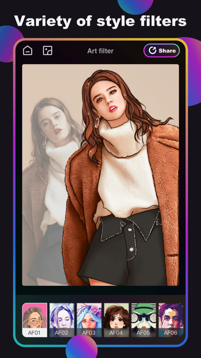 Welcome to PhotoFX-Photo Editor Various photo editing and photo effects are now integrated into our application. If you want to create imaginative or simple and fashionable bald Pina art, but you don’t have the relevant skills or actual creation, then this The camera is your best choice. 【Dispersion】 * Sci-fi-like dispersion effect of smashing the edges of characters * Adjust the shape distribution of the dispersion and other options to achieve a personalized display effect 【Cartoon Yourself】 * Just one second to make cartoon art effect of yourself,and instantly become the protagonist of anime! * Create a personal cartoon image, break through the barriers of the dimension, and take you into the world of ACG. 【Separate Color】 * Colorful and diverse character switching * You can adjust different styles according to your own preferences 【Magic Cutout】 * A variety of exquisite scene materials give you an immersive feeling * Different status can be adjusted Subscription pricing and terms: For unlocking all features and content, Premium Membership offers one auto-renewable subscription options: Monthly payment subscription options. Yearly payment subscription options. End of trial and subscription renewal: - Payment will be charged to iTunes Account at confirmation of purchases. - Subscription automatically renews unless auto-renew is turned off at least 24 hours before the end of the current period. -Account will be charged for renewal within 24-hours prior to the end of the current period, and identify the cost of the renewal. -Subscriptions may be managed by the user and auto-renewal may be turned off by going to the user’s Account Settings after purchase. -Any unused portion of a free trial period, if offered, will be forfeited when the user purchases a subscription to that publication, where applicable. - Privacy Policy:http://www.huashengtec.pro/photofx-photoeditor/privacyPolicy - Terms of Use:http://www.huashengtec.pro/photofx-photoeditor/termsofuse