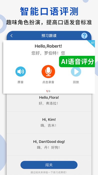 紧贴校内教学,智能辅助老师家长, 有效提高成绩,节省少年宝贵时间。 -------------------------------------- 【解决四大难题】 成绩不理想 口语不流利 学习走弯路 家长挺忙的 让孩子爱读敢说,成绩口语双提升! -------------------------------------- 【产品特色】 课本点读:同步教材、纯正发音、贴心翻译,可点读、连读、复读。 单词记忆:课文同步单词,单词评测,跟读、听写全面练习,记忆更有效。 口语训练:课文同步对话,角色扮演、智能评分、矫正发音,让孩子说一口流利的英语。 同步测试:多样化的课文同步测试,循序渐进、由浅入深,提升巩固综合知识。
