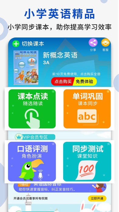 紧贴校内教学,智能辅助老师家长, 有效提高成绩,节省少年宝贵时间。 -------------------------------------- 【解决四大难题】 成绩不理想 口语不流利 学习走弯路 家长挺忙的 让孩子爱读敢说,成绩口语双提升! -------------------------------------- 【产品特色】 课本点读:同步教材、纯正发音、贴心翻译,可点读、连读、复读。 单词记忆:课文同步单词,单词评测,跟读、听写全面练习,记忆更有效。 口语训练:课文同步对话,角色扮演、智能评分、矫正发音,让孩子说一口流利的英语。 同步测试:多样化的课文同步测试,循序渐进、由浅入深,提升巩固综合知识。