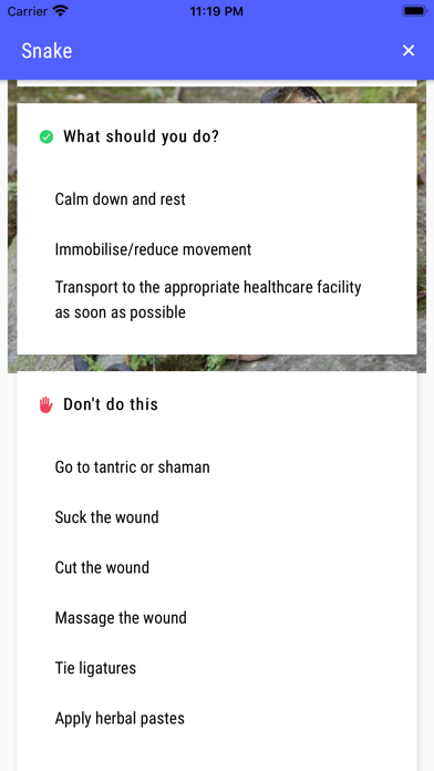 This app is used to educate public on the important of prevention from being bitten by a venomous animal and also pre-hospital intervention when you have been bitten by one. MyRECS provide information to assist for the general public on Malaysia venomous creature. All information is to be used as reference only and not intended as substitute for professional first aid training and techniques. Call 999 to seek urgent medical advice or assistance.