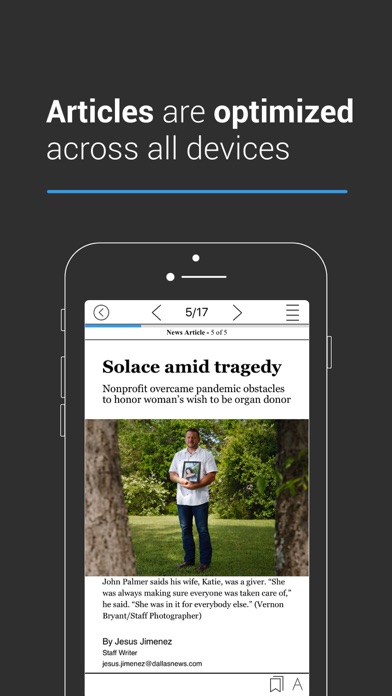 The Dallas Morning News ePaper provides a digital replica of the morning paper, but also has so much more. You can still take your morning paper wherever you go, but the ePaper also has an evening edition, allowing you to stay up to date on breaking stories that day and give you a sneak peek at what is to come the next morning. No matter what time it is, you can stay up-to-date with your favorite reporters and columnists in an easy-to-read format. Downloading the app is free, but you will need a subscription to access the paper. The monthly and semi-annual subscriptions to The Dallas Morning News ePaper are auto-renewing subscriptions. Upon purchase, you will receive access to The Dallas Morning News ePapers. Prices for the subscriptions are $4.99 for one month and $29.99 for six months. Payment for this subscription will be charged to your iTunes account upon purchase. The subscription will auto-renew within 24 hours of the current subscription expiring. Auto-renewing subscriptions can be managed via Account Settings allowing them to be turned off. No cancellations of the current subscription are allowed during the active subscription period. Terms and Conditions: https://www.dallasnews.com/help/terms-of-service/ Privacy Policy: https://www.dallasnews.com/help/privacy-policy/