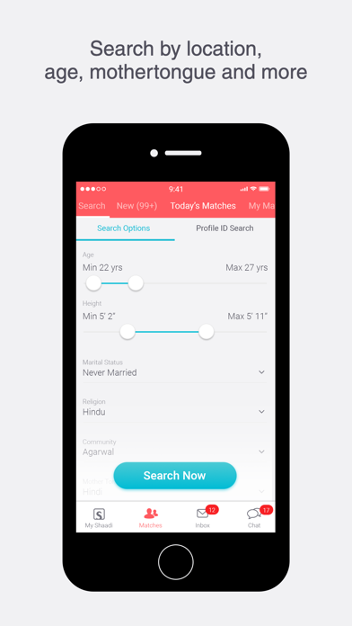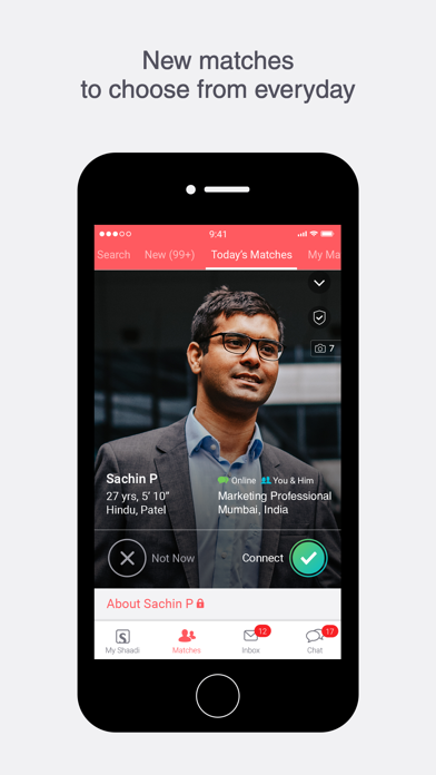 With over 35 million members, Shaadi® has connected more people for marriage than any other matrimony app! A pioneer in the matchmaking & matrimony industry, we’ve emerged as the most trusted and secure service for finding a life-partner. Why Choose Shaadi for Your Matrimony Search? The App is free to download and provides access to features that allow you to: • Video call your matches with our newly launched Shaadi Meet • Register & Create your matrimony profile • Search bride or groom by community, city or profession & find new matches every day • View full matrimonial profiles of your matches along with their photos • Shortlist matches you like and save favorites for future viewing • Chat on-the-go with our Award Winning Shaadi Messenger - anytime, anywhere! And if you want to enjoy the following benefits : • View the Phone numbers, Email IDs of the matches you’d like to connect with • Send personalized messages and Initiate Chat • Increase your profile’s visibility and Responses Just upgrade to a premium membership offered at affordable prices. Shaadi is India's most trusted matrimony app and we are proud that we are continuously leading the matchmaking category even after a decade. We are also the world’s largest matrimonial app which was started with one simple motive - to help people find their partner for marriage. Shaadi is sometimes misspelt as Shadi,Shadhi, Shadii, Shaddi, Sadhi, Sadi, or Saadi. Some accolades that we are proud of include: • Best Matrimony Site (Reader's Choice, New York Times publication, USA) • Top 50 Innovative Companies (Fast Company, USA) • Most Trusted Matrimony Brand (Brand Equity, Economic Times, India) Shaadi is also one of the smallest sized apps in its category. Find matrimony profiles from your city, be it Delhi, Mumbai, Bangalore or London. Search for matches by religions like Hindu, Muslim, Christian, and others. You can also find matches based on your mother tongue. As we have matrimony profiles of all major regional languages like Tamil, Telugu, Marathi, Hindi, Bengali, Punjabi, Gujarati, Kannada and Malayalam You can also search for relevant matrimony profiles from your preferred communities such as Reddy, Nair, Kamma, Ezhava, Kayastha, SC, Maratha, Iyer, Brahmin, etc. You can start conversations with your matches using our premium membership plans that start @ INR 4,600 for 3 months. The rates will be displayed in the local currency according to your selected iTunes store. You can purchase these premium membership plans through in-app purchases. There is no auto-renewal feature for these plans though, so to continue your conversations, you will need to renew the premium membership yourself. So download our app today and find your perfect life partner! For a daily dose of love and relationship tit-bits: • Follow us on Twitter at https://twitter.com/ShaadiDotCom • Like us on Facebook at https://www.facebook.com/shaadicom • Follow us on Instagram at https://www.instagram.com/shaadi.com Terms of Use: https://www.shaadi.com/shaadi-info/index/terms Privacy Policy: https://www.shaadi.com/shaadi-info/index/privacy