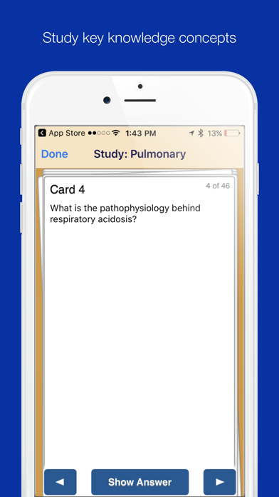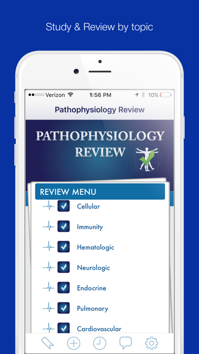 Pathophysiology Review is a comprehensive review app for anyone in an allied health pathophysiology course (e.g. nursing, paramedic) or those looking to challenge pathophysiology through Excelsior College Examinations. Comprehensive in nature with detailed rationale answers in flash cards and questions, each of this app's 650 items creates an opportunity to prepare for an exam--and to better understand disease processes as a clinical provider. Pathophysiology Review™ uses the Limmer Creative S-R-T approach to study and contains: Study: 350 Study cards Review: 200 Topical review questions Test: Two 50-question simulated final exams Pathophysiology Review is broken down into 10 topics by body system including: Cellular Immunity Hematologic Neurologic Cardiovascular Pulmonary Musculoskeletal Endocrine Gastrointestinal Renal and Urologic NOTE: Purchase of this app will not provide the user access to the lc-ready.com web site