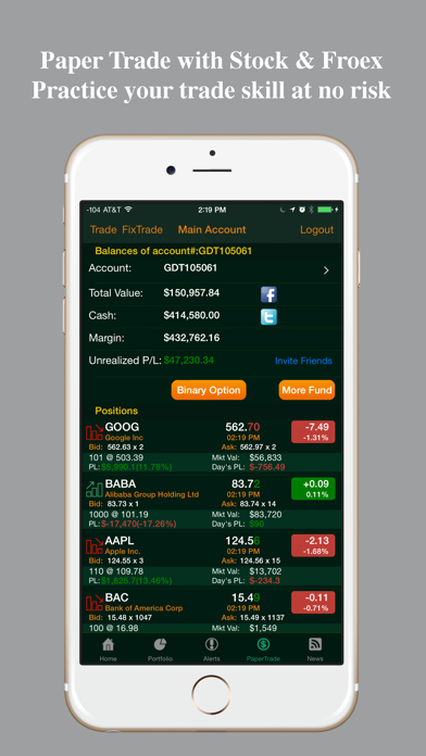 StockPro - The most comprehensive stock app in the mobile world. Brings you free streaming live quotes, pre-market/after-hour quotes, portfolio monitoring, advanced full screen chart, push notification based alert, economic news, event/earnings calendar, market signal scans and many more... StockPro is identical to the Full Version of "Real-time Stock Tracker", DO NOT download if you already purchased full version from Real-time Stock Tracker. Feature Highlights: -Multiple watch lists -Multiple portfolios -Real-time Alerts -Real-Time streaming quotes -Options -Market single scans -Global Indexes & Currencies -Futures & Commodities -Stock Screener -Chart with 50+ technical indicators -Paper Trade -News, Events & Earnings Feature Details: --------------------------------------------- -== Watchlist and real time quotes ==- --------------------------------------------- Free real-time streaming quotes, no more refresh, no more 15-20 min delay * After hour and pre-market price DJIA, NADAQ, S&P 500 futures Prices are always associated with time, you will never be misled Symbol lookup Create unlimited watchlists Add unlimited symbols to existing watchlist Delete/Re-order your watch list and symbols --------------------------------------------- -== Market single scans ==- --------------------------------------------- 52-week high/low Strong Volume Gainer/Losser 50/200 MA Crossover MACD Crossover RSI Oversold/Overbought Above/Below Bollinger Band SAR Buy/Sell ADX Uptrend/Downtrend Aroon Uptrend/Downtrend Gap Up/Down --------------------------------------------- -== Stock details ==- --------------------------------------------- Open, previous close, high/low, 54 week high/low, volume/avg volume Earnings info for up to past 6 quarters Next earning release date Add coming earning release date to your calendar Company news --------------------------------------------- -== Option chain ==- --------------------------------------------- Load option chain if available --------------------------------------------- -== Chart ==- --------------------------------------------- Simple line/candle chart 1, 5 day, 1,3,6 month and 1,2,5 year chart Advanced Chart: Intraday chart. 1min, 5min, 15min chart MACD,RSI,Bollinger bands, Stochastic ... More than 50 technical indicators and overlays --------------------------------------------- -== Portfolio tracker ==- --------------------------------------------- Create unlimited portfolios Added unlimited positions to existing portfolio Cash management Delete/Re-order your portfolio and positions Gain/Loss summary per portfolio Gain/Loss details per position Realized Gain/Loss and Gain/Loss summary in transaction log Import portfolios from goog/yahoo finance --------------------------------------------- -== Alerts ==- --------------------------------------------- Setup unlimited push notification based alert Backed by our streaming quote engine, alerts are run/triggered in seconds Setup simple alerts based on price, price change/percent, volume Trailing stop alert Price on home screen (badge) --------------------------------------------- -== Exchange supported ==- --------------------------------------------- USA/CA NYSE, NASDAQ, ASE, CBT, CME, NYB, CMX, NYM, OBB, PK, TOR, VAN Europe AMS, BAR, BER, BIL, CPH, DUS, EBS, FRA, GER, HAM, HAN, LSE, MAD, MCE, MIL, MUN, OSL, PAR, STO, STU, SWX, VIE Asia Pac ASX, BSE, CPH, HKG, JKT, KOE, KSE, NSI, NZE, SES, SHH, SHZ, TAI, TLV, TWO --------------------------------------------- -== News and economic events ==- --------------------------------------------- RSS news reader Earnings calendar Dividend calendar Economic event calendar * real-time quotes for USA stocks only