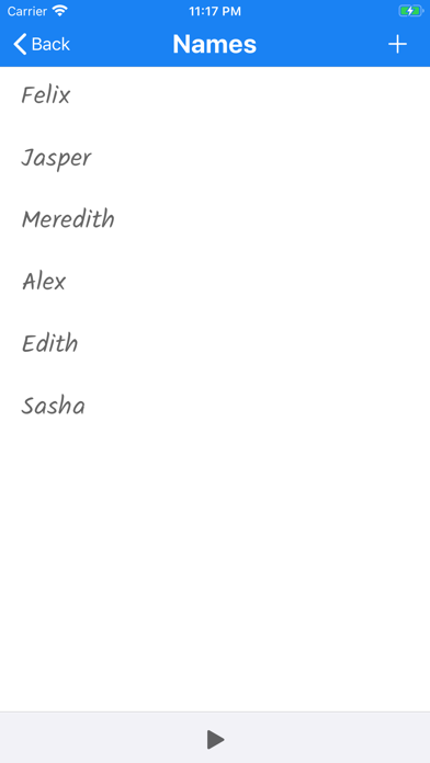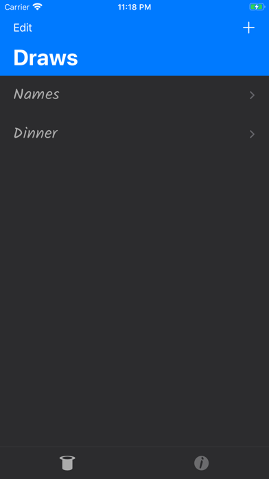 Quickly make lists of People/Items, and shuffle the order. Useful for teachers, buskers, or anyone that needs to produce a shuffled list of objects. Some interesting uses: -Create a Busker draw - add all busker names to the "Hat" ... Hit shuffle ... pick your time slots... profit! -Create a bucket list of things you've always wanted to do. Hit shuffle... do the first thing on the list!.. remove & repeat! -Create a list of Dinner meals... Hit shuffle... make/buy the first meal on the list! -Choose your unborn child's new name... Add a list of names... Hit shuffle... BAM! there's your new baby name! -Can’t decide where to take your vacation?… you guessed it… Make a list… shuffle… Go! use your imagination, there are endless possibilities for fun. The Draw is very intuitive and simple to use: -Create a new Draw -Add some names -Hit the shuffle button -Click the stop button to finish the "shuffle" and display your new random order