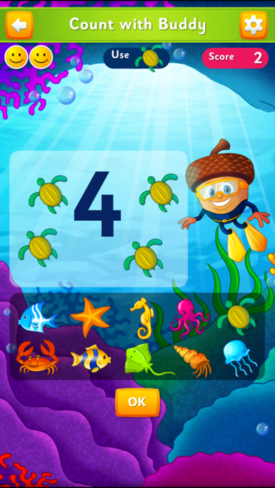Eggy Numbers teaches young children to identify, write and count numbers 1 to 10 through a series of seven interactive numeracy games. Using the interactivity of the iPad and iPhone, three games focus on teaching children how to write each number by tracing over dot-to-dot numbers, and drawing numbers from memory. Four more games develop counting skills using fun and rewarding games. With its hands-on activities, engaging animation and motivating rewards, Eggy Numbers 1 - 10 provides a rewarding learning experience for young children. Buddy the Acorn will guide your child and help them stay motivated to collect 18 new critters and 138 golden acorns!