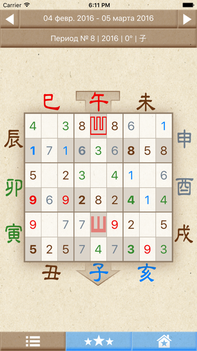 Программа «Летящие звезды» поможет вам всегда быть в курсе ситуации – она показывает не только текущие летящие звезды года и месяца, но и помогает составить карту летящих звезд дома, и посмотреть, как с ней взаимодействуют зведы года и месяца. Возможности программы: • Удобный, понятный и красивый интерфейс; • Летящие звезды года и месяца; • Обозначение направлений буквами или иероглифами, по выбору; • Построение летящих звезды дома любого года постройки; • Ввод данных по дому в удобной форме: год или период постройки, градус или гора фасада • Перелистывание и быстрый поиск карт • Сохранение карты летящих звезд дома в картотеке • Быстрый поиск по картотеке • Описание 81 комбинации летящих звезд