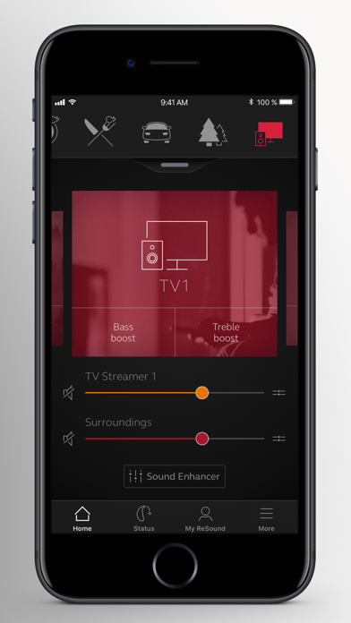 The ReSound Smart™ app is compatible with the following hearing aids: • ReSound LiNX2™ • ReSound LiNX™ • ReSound LiNX TS™ • ReSound ENZO2™ • ReSound ENZO™ • ReSound UpSmart™ The ReSound Smart app lets you control your hearing aids directly from your mobile device. You can change programs, and make simple or more advanced sound adjustments and save them as favorites. The app helps you learn what you can do and how to do it. It can even help you find your hearing aids if you lose them. Notes: Please contact your local ReSound representative for product and feature availability in your market. We recommend that the hearing aids run the latest software version. If in doubt, please contact your hearing care professional. ReSound Smart mobile device compatibility: Please consult the ReSound app website for up-to-date compatibility information: www.resound.com/compatibility Use the ReSound Smart app to: • Adjust volume settings on your hearing aids • Mute your hearing aids • Adjust volume of your optionally acquired ReSound streaming accessories • Adjust speech focus as well as noise and wind-noise levels with Sound Enhancer (feature availability depends on your hearing aid model and the fitting by your hearing care professional) • Change manual and streamer programs • Edit and personalize program names • Adjust treble, middle and bass tones to your preferences • Save your preferred settings as a Favorite – you can even tag to a location • Help locate lost or misplaced hearing aids • Tinnitus manager: Adjust sound variation and frequency of the Tinnitus Sound Generator. Select Nature Sounds (feature availability depends on your hearing aid model and the fitting by your hearing care professional) For more information please visit https://www.resound.com/hearing-aids/apps/smart or the support website via the link in the app store.