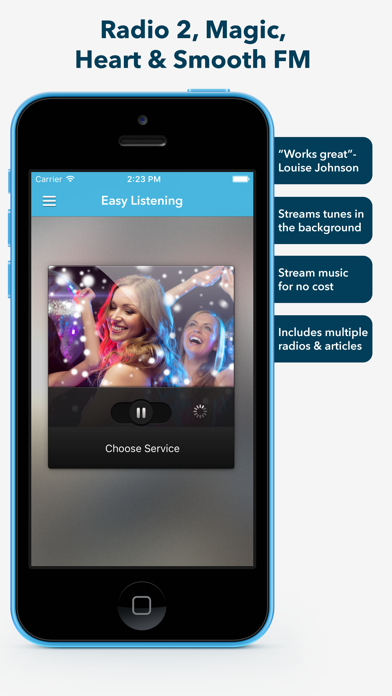 Listen Live to your favourite radio station on your iPhone or iPod. Tune in to Magic FM, Heart, BBC Radio 2, or Smooth Radio. Supports Background Play, so you can put your iPhone in your pocket, or use other apps while continuing to listen.