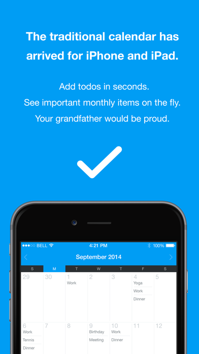 QuickNote Calendar is a simple, clear, intuitive todo list calendar for iPhone and iPad. The traditional kitchen calendar has arrived for iPhone and iPad. Simple, quick, and uncomplicated, QuickNote Calendar is the todo list calendar app to keep your mind clear. Create daily lists and add tasks to your calendar. See your whole month at a glance. Quickly swipe to create, complete and delete your tasks. Drag and drop todos, create reminders for yourself, and finally make use of a traditional style calendar on the go.